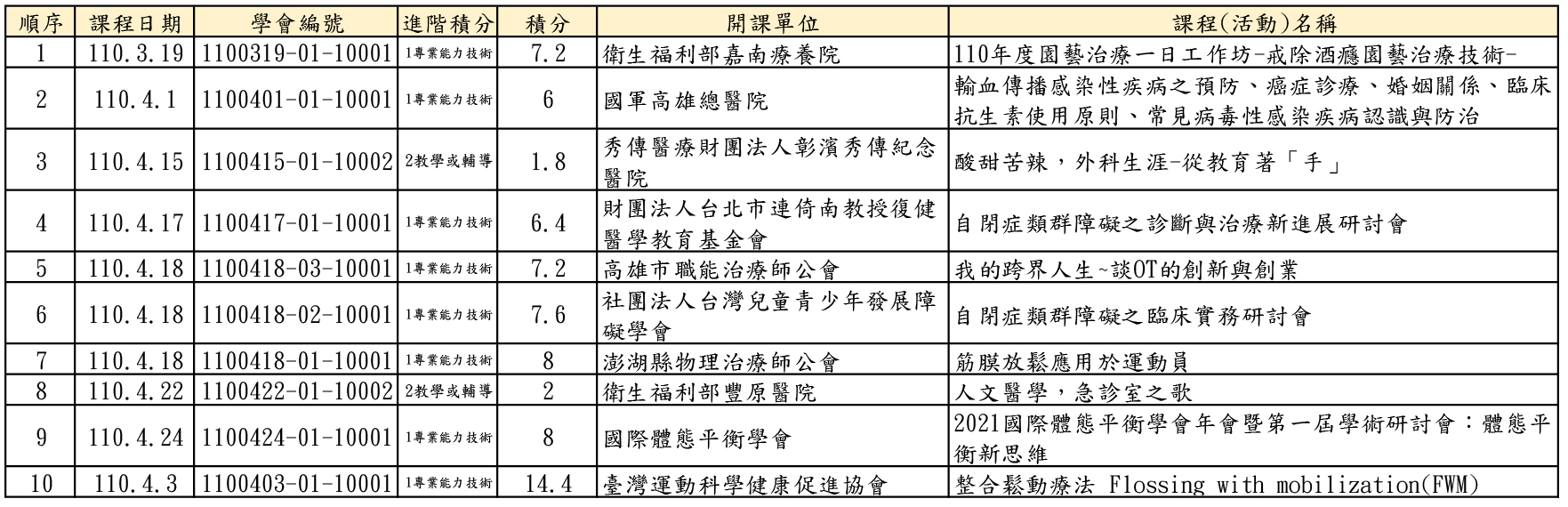 以下課程經本會審核後認證進階制學分,並於每個月固定更新,公告至本會官網。